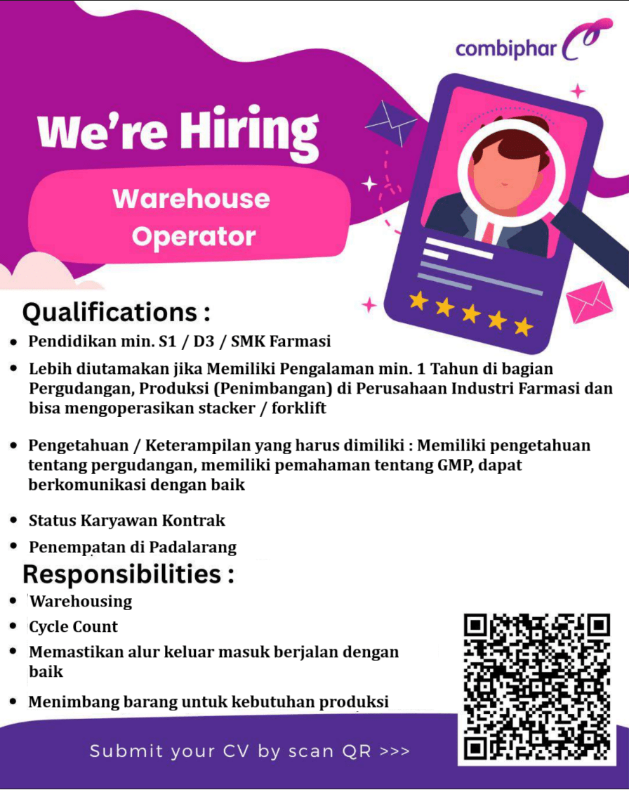 Sebagai salah satu perusahaan dengan reputasi kuat di industri farmasi Indonesia, Combiphar menawarkan lingkungan kerja yang dinamis dan peluang karier yang menjanjikan bagi para profesional muda.