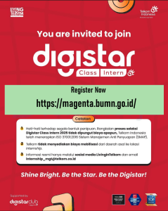 Dalam rangka mendukung transformasi digital nasional dan menyiapkan generasi muda yang siap menghadapi era teknologi, Telkom Indonesia kembali menghadirkan Digistar Class Intern 2025 Batch 3, sebuah program magang eksklusif dengan pelatihan intensif dan pengalaman kerja nyata.