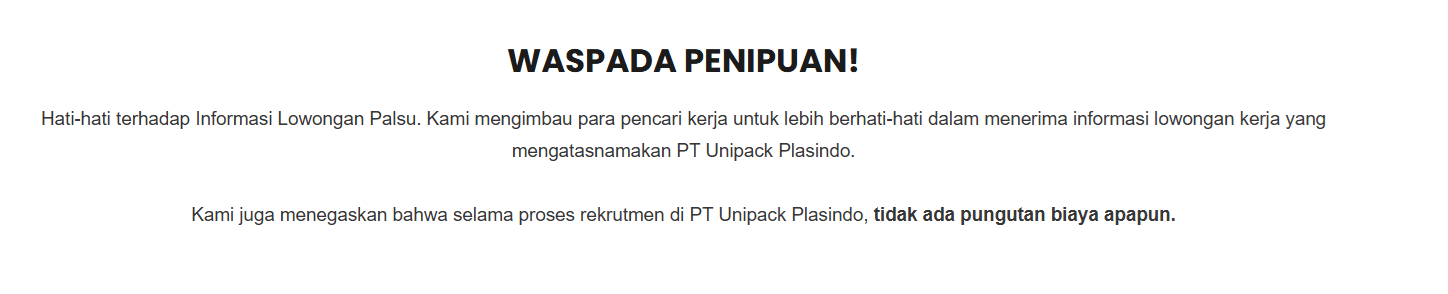Saat ini PT Unipack Plasindo kembali membuka lowongan kerja terbaru pada bulan Oktober 2025. Adapun dibawah ini adalah posisi jabatan yang saat ini tersedia bagi Anda para pencari kerja yang tertarik untuk mengembangkan karir Anda bersama PT Unipack Plasindo dengan kualifikasi sebagai berikut.